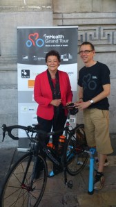 Vi fick stor uppmärksamhet och jag cyklande på en trainer medan mHealth instruerade den nya tekniken vi använder på cykelturen.