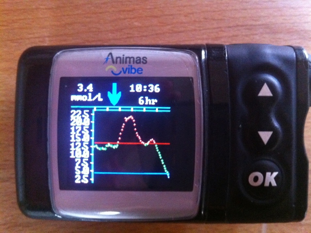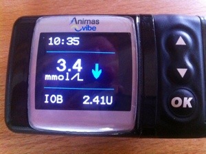 Och mycket riktigt efter 2,5 timme varnad CGM för lågt blodsocker, 3,4mmol/l