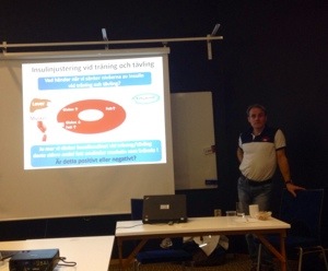 Dr Peter Adolfsson, dietist Stig Mattsson, Erik och Victor från Novonordisk skulle byta våra kolhydratsflaskor på tre ställen efter vägen till Mora.
