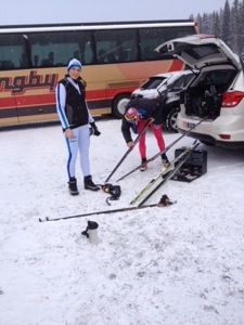 Vi la ut skidorna vid startfållan och samlades för att gå igenom dagens upplägg igen.