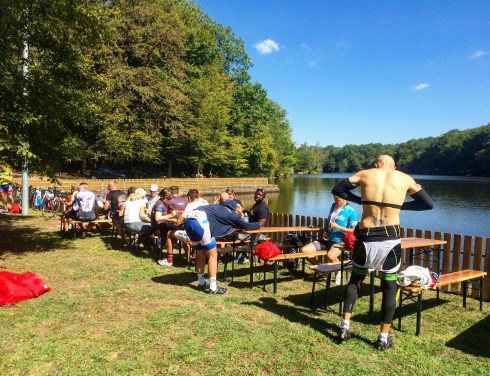 26 grader varmt idag och mindre blåsigt. Lite väl mycket vind, 14m/s mest motvind men när vi cyklar i grupp går det fort ändå. Idag va vi 20 cyklister som cyklade ihop till första stoppet. De första 100 km gick smidigt och vi hade en härlig lunch i solen vid en liten sjö. Nog för att cykling luftar huvudet på alla sätt men det är skönt att få ta av sig hjälmen en stund!