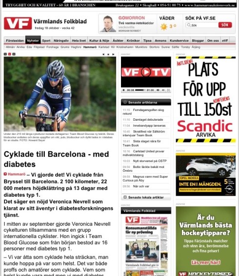 Jag är glad att diabetes och träning även fick uppmärksamhet här hemma efter cykelturen!