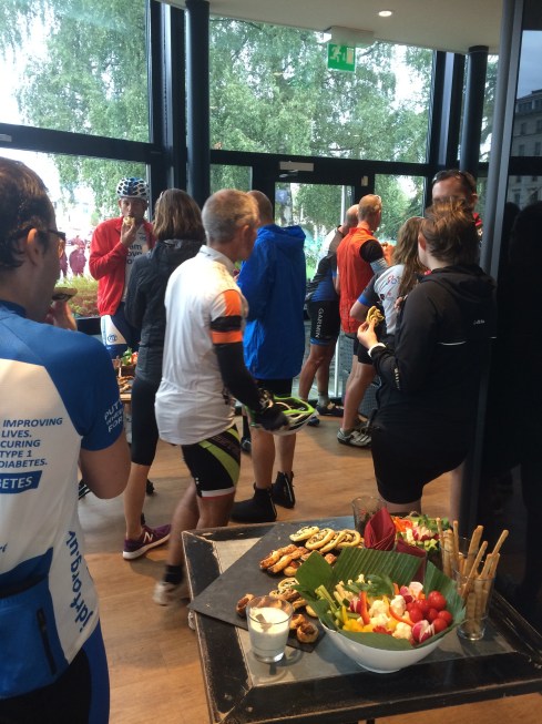 Det syndes på blodsockret att jag blev stressad. Min cgm (continulig blodsockermätning via en knapp) visade att blodsockret steg fort genom två dubbelpilar upp på insulinpumpen. I det här läget va det tur att jag har en insulinpump jag kan ha på mig i vattnet.