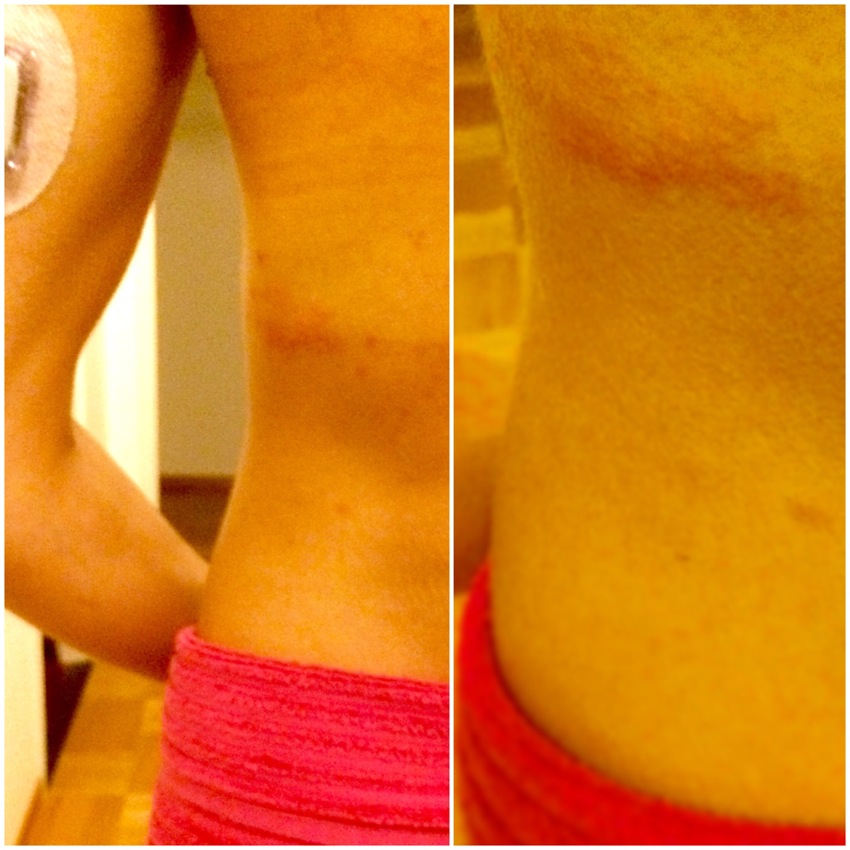 Det syndes på blodsockret att jag blev stressad. Min cgm (continulig blodsockermätning via en knapp) visade att blodsockret steg fort genom två dubbelpilar upp på insulinpumpen. I det här läget va det tur att jag har en insulinpump jag kan ha på mig i vattnet.