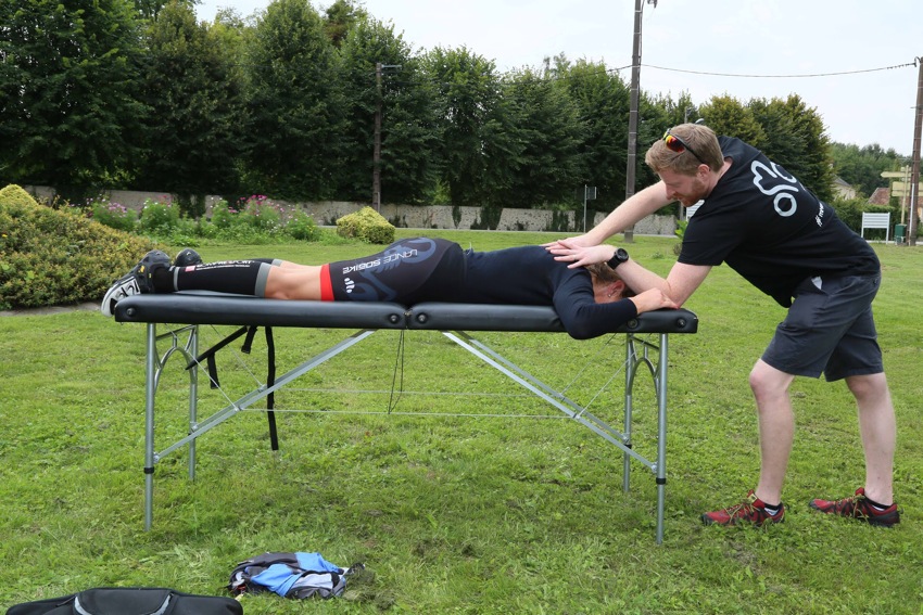 Rulla en handduk ca 3 cm hög som du placerar under tårna.