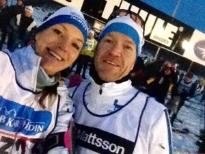 Det va -11 grader klockan 07 när starten gick. Jag och Susanna stog bredvid varandra och kände oss laddade. Eftersom jag fortfarande kände av influensan för ett par veckor sedan och Susanna precis blivit frisk från en jobbig förkylning så hade vi bestämt oss för att njuta av vädret och lyssna på kroppen och sikta in oss på bra blodsocker. Jag ville ta det jätte lugnt upp för ”mördarbacken” och känna på kroppen. Det kändes bra och jättekul att åka i så fina spår så det va bara att köra. Jag njöt och milen tickade på fort.