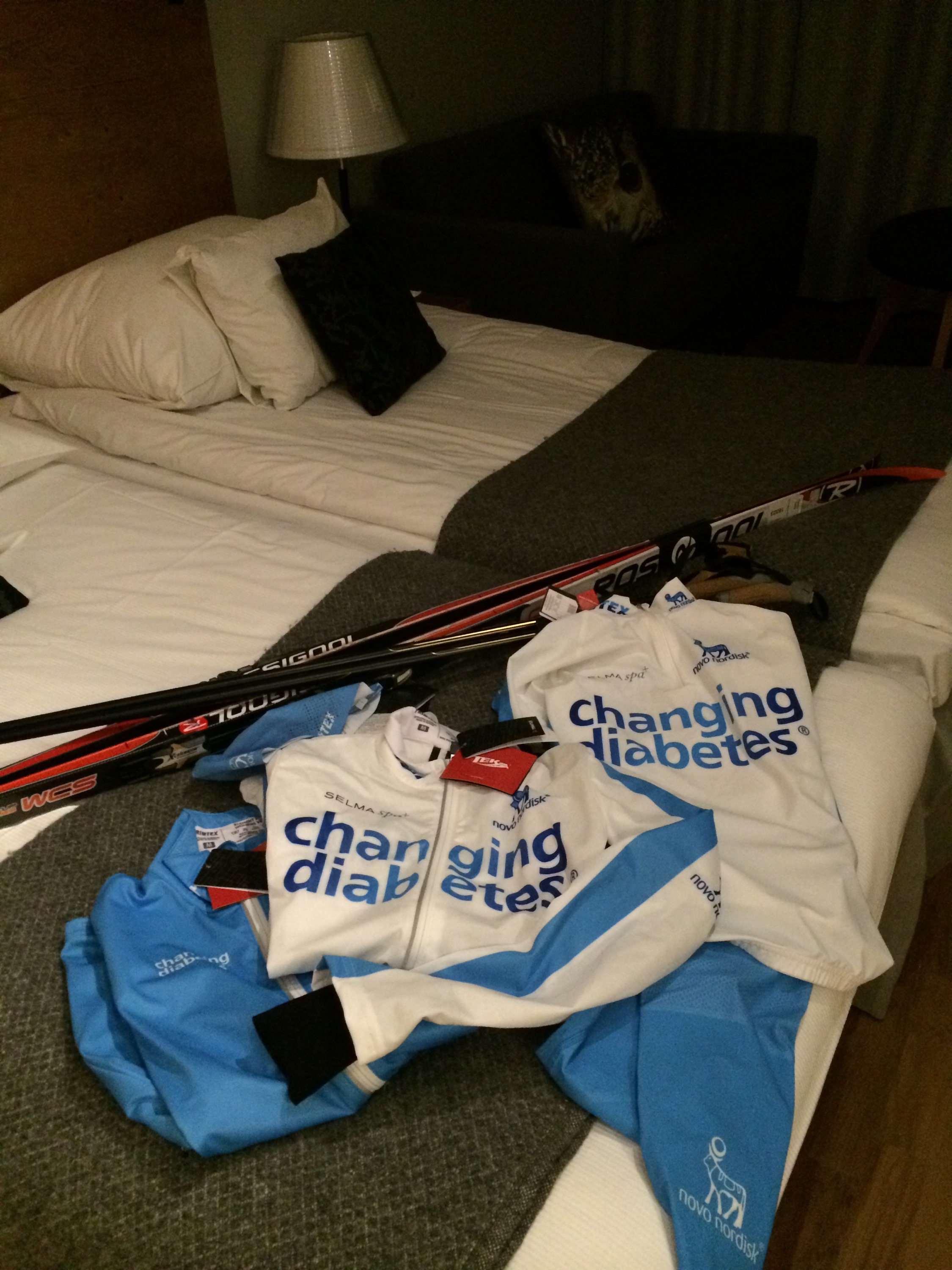 På kvällen presenterades diabetesteamet ”Ski Team Novonordisk” för de andra i NovoNordisk gänget. Jätteintressant att höra mina fantastiska teamkompisars berättelser om deras livsresor med diabetes och träning. Dr Peter Adolfsson och dietisten Stig Matsson berättade om sin diabetesstudie och hur vi skulle använda oss av deras idéer.