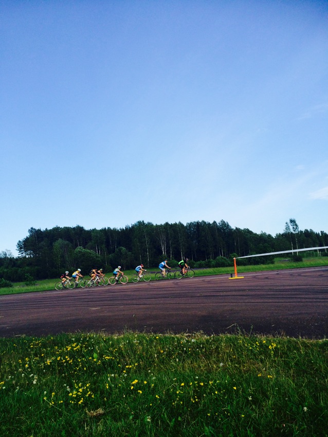 Innan starten på GP loppet hade jag druckit upp hela nöd-flaskan med sportdryck och nästan ett helt rör med druvsocker 😜 …Och ändå visade min cgm 3,8 pil ner. Jag tänkte att kolhydraterna borde kicka in vilken sekund som helst när jag startade. 8 varv på en 3,3km rundbana skulle vi damer köra. Det kändes segt och efter 5 varv tappade jag mina lagkompisar och all energi försvann plötsligt. Som tur var va vi två trötta som tappade och kunde hjälpas åt att dra.